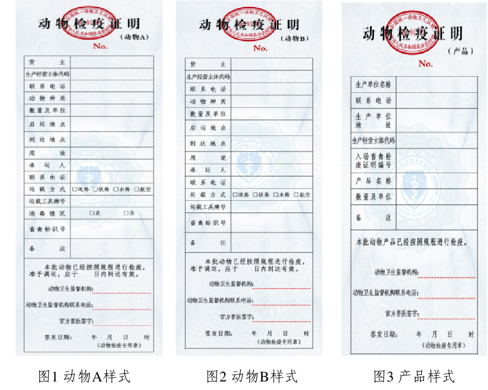 说明:右上角“No.”附属的阿拉伯数字为动物检疫证明编号。